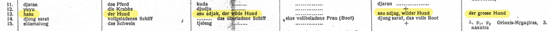 hasu; - asu adjak; - ein Hund, - der wilde Hund.