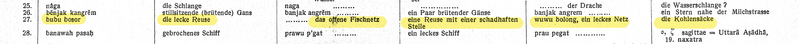bubu bosor (Lecke Reuse); -bubu bosor; ein Fischnetz mit einem Loch.