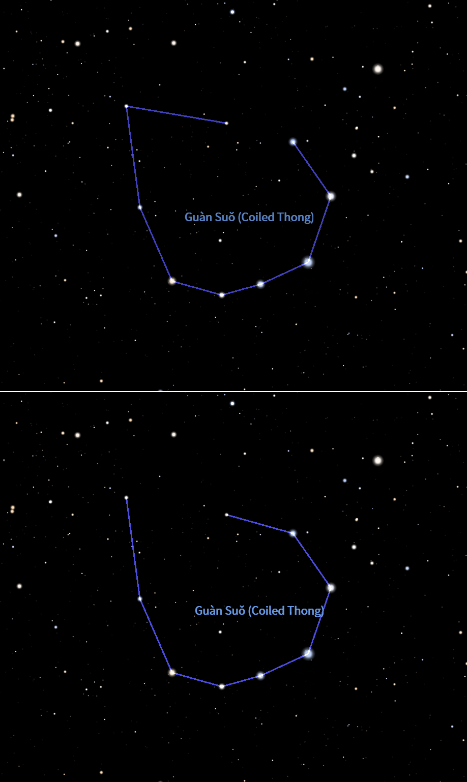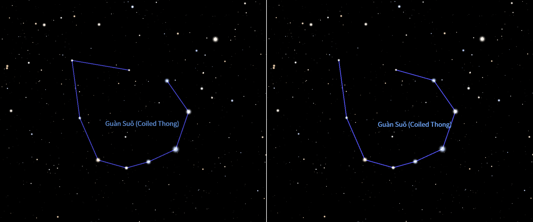 Two different possible positions for the opening of the Guansuo constellation.