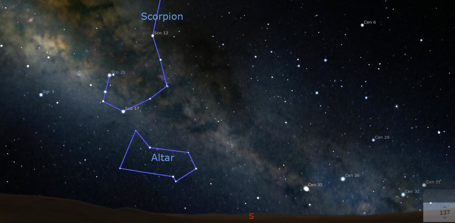 Constellation Ara (Altar) according to Ptolemy's Almagest: simulation with Stellarium 24.x.