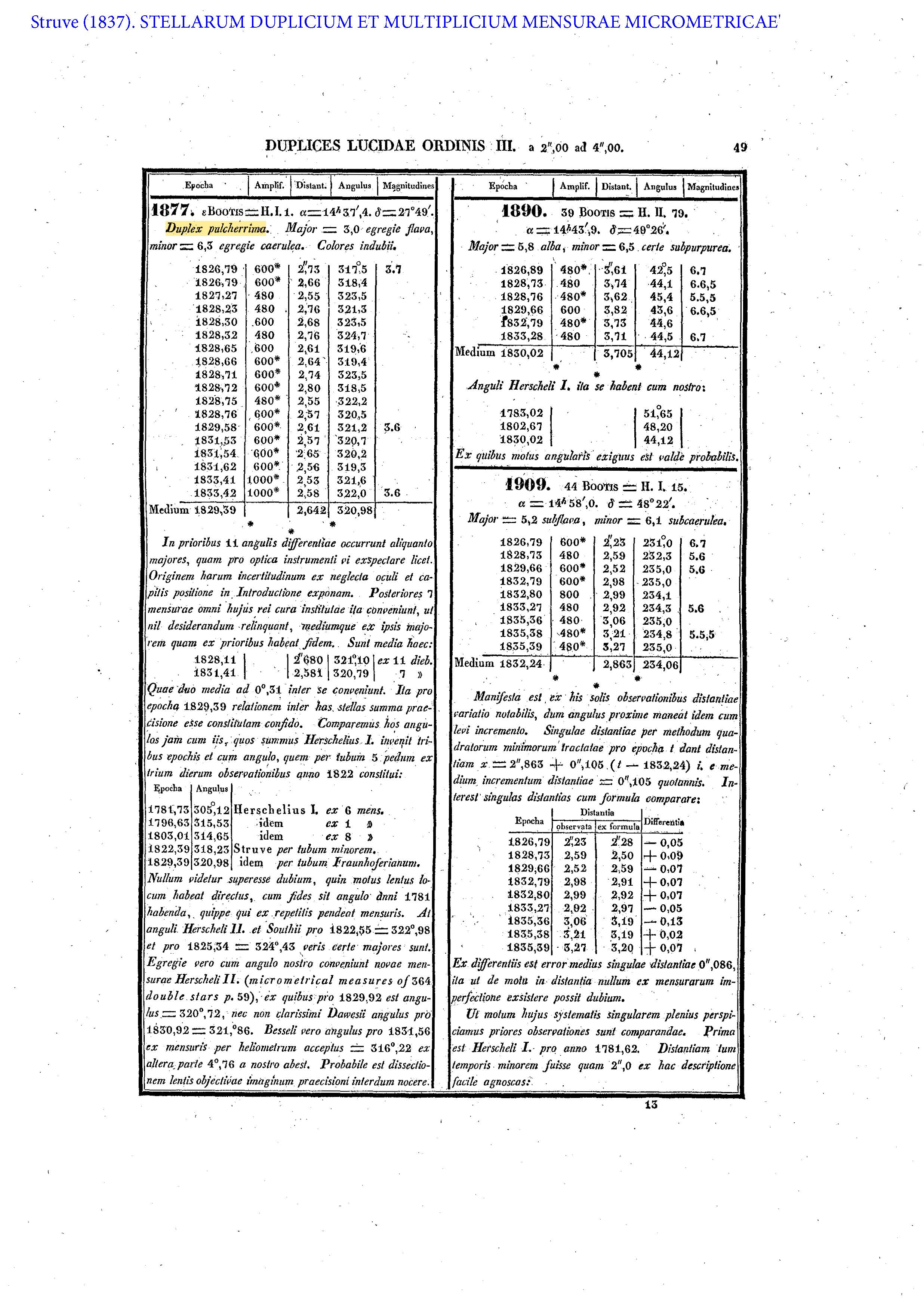 Pulcherrima in Struve (1837) Mensurae Micrometricae 1824-1837
