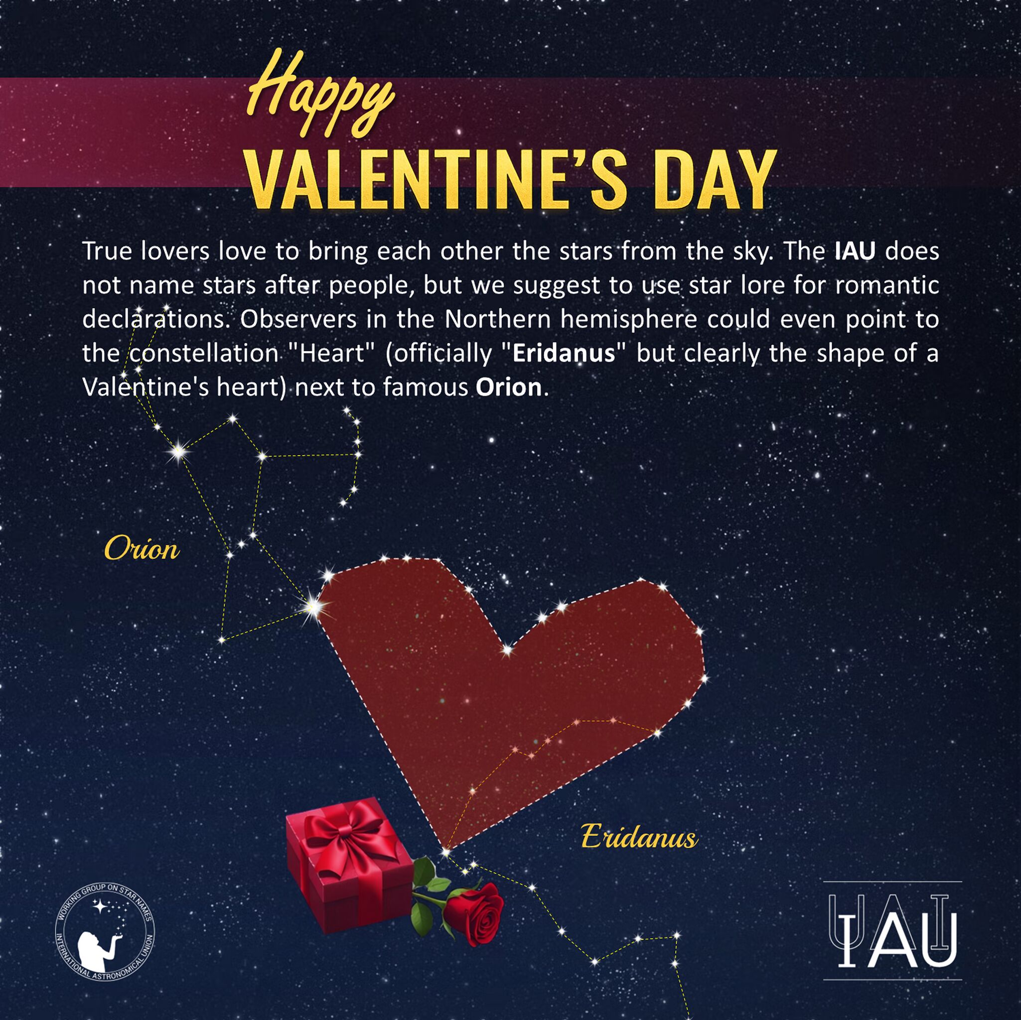 Eridanus in IAU WGSN congratulation on Valentine's Day (CC BY Sadegh Faghanpour for WGSN).