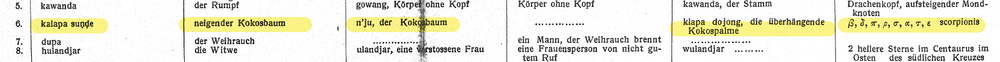 kalapa suṇḍe, n'u, ein neigender Kokosbaum, - der Kokosbaum. Im Leidener Kalender wird keine Auslegung angegeben;