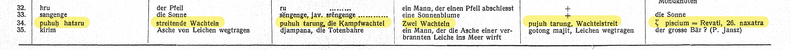 "sind seit alten Zeiten in einem Werk ,,wariga" niedergelegt, in dem wir zwei Kulturschichten, nämlich indische und malaio-polynesische Bestandteile wiederfinden."