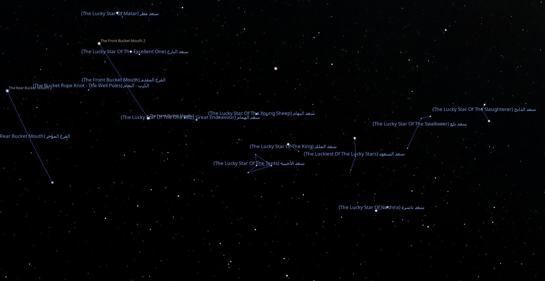 | 10:52, 9 November 2025 | Stellarium-LuckyLunarMansions.jpg (file) | 134 KB | Lucky Stars, Arabian lunar stations (CC BY Khalid al-Ajaji for Stellarium). | 1 | |