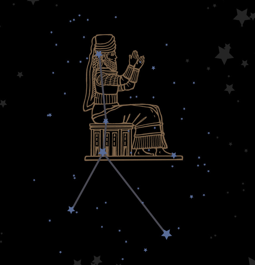 Throne of Anu in constellation Cancer, drawing by Kay Elzner in Hoffmann (2021), Wie der Löwe an den Himmel kam, Franckh Kosmos Verlag, Stuttgart.