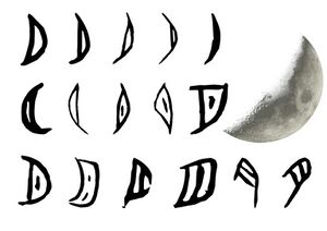 [[File:The character Yue(月) in oracle bones 3000 years ago.jpg|thumb|The character Yue(月) in oracle bones more than 3000 years ago]]