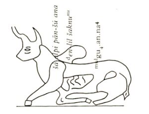 |[[File:Fig7 taurueschen 800dpi.jpg|thumb|Taurus as drawn on a clay tablet (VAT 7851) from Seleucid time, new drawing published by Hoffmann (2025).<ref name=":0" />]]