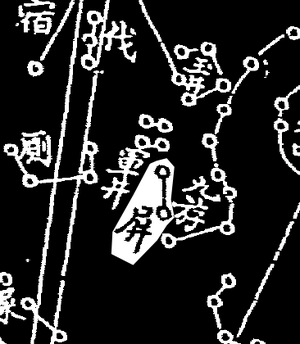 - ↑ Yi Shitong伊世同. Zhongxi Duizhao Hengxing Tubiao中西对照恒星图表1950. Beijing: Science Press.1981: 56.