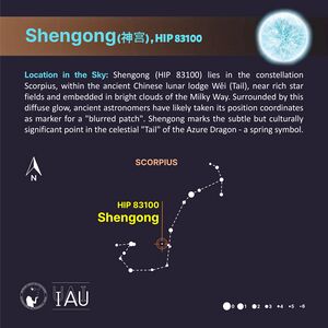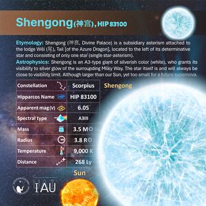 [[File:Shengong profileCard SadeghFaghanpour-IAU-WGSN.jpg|thumb|Shengong - profile card for the modern star name (CC BY Sadegh Faghanpour for IAU-WGSN).]] | |||