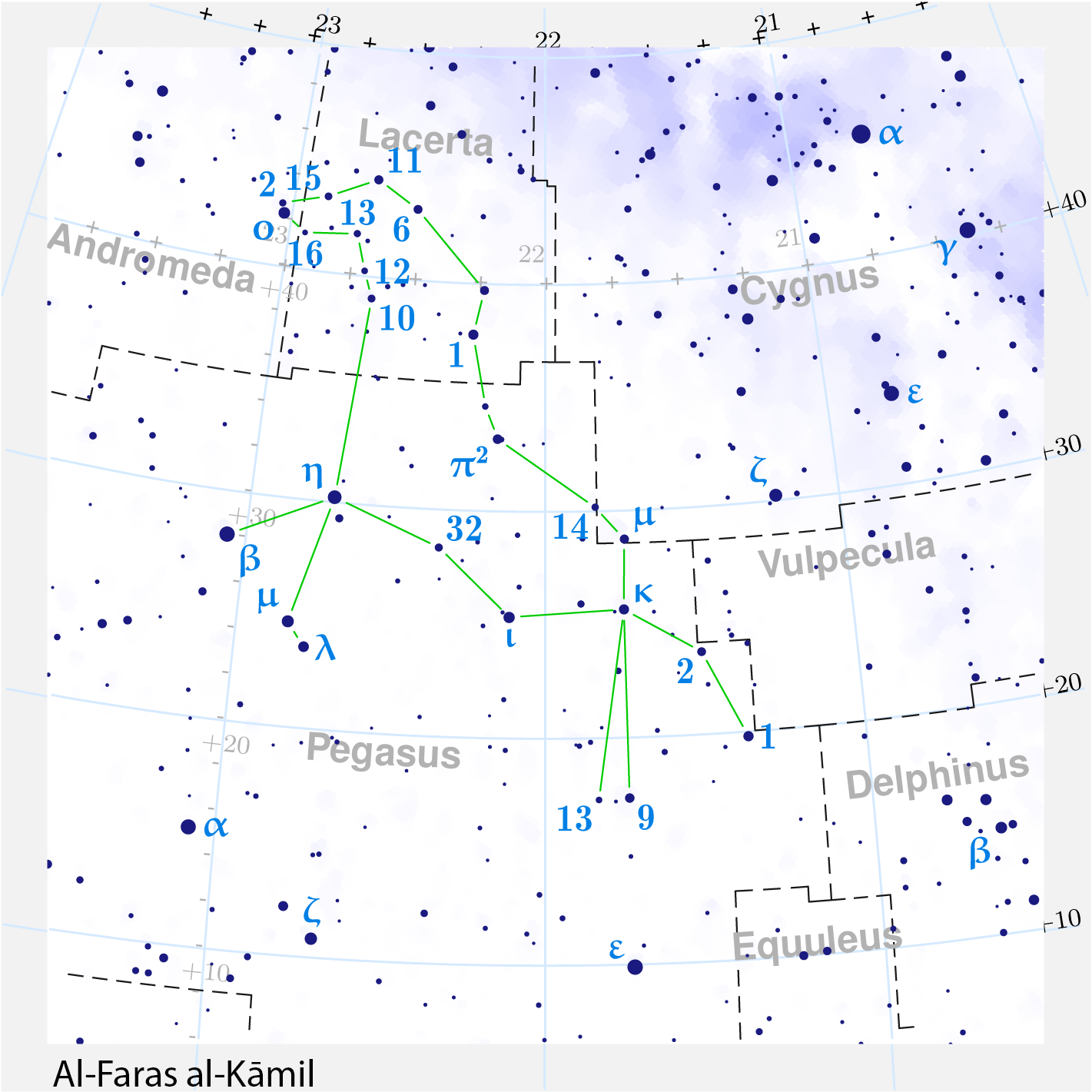 Al-Faras al-Kāmil with member stars as described by al-Ṣūfī in Kitāb al-Kawākib.