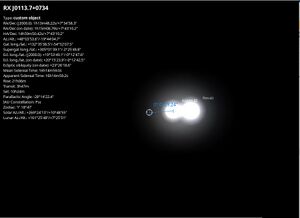 ζ Psc is a double or multiple star. Clearly resolved are the components A (with V=5.19 mag), B (with V=6.10 mag), and the X-ray source RX J0113.7+0734 (which is linked to them in SIMBAD but is actually 52" east of the A-component, 29" east of B). Revati is the name of the component ζ Psc A. This system ζ Psc has the two numbers 5737 and 5743 in the Hipparcos-catalog[1] and both of these HIP-numbers are given twice, so that it looks like a quadruple. Yet, in both pairs of stars the all physical entities (spectral class, fluxes in all wavebands) are identical in all (two to six) digits. So, this star is likely only double with the A-type star HIP 5737 as the brighter component.
