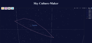 [[File:BAN+Arrow stellarium.jpeg|alt=Stellarium map|thumb|Mesopotamian constellations PAN (Bow) in Arrow Stellarium, painting by Jessica Gullberg (2021).]] | [[File:BAN+Arrow stellarium.jpeg|alt=Stellarium map|thumb|Mesopotamian constellations PAN (Bow) in Arrow Stellarium, painting by Jessica Gullberg (2021).]] | ||