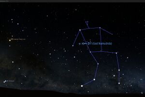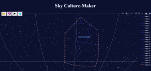 [[File:Numushda Cen.jpg|thumb|NU.MUŠ.DA as a deity in the area of modern Centaurus which is in the southern Milky Way (Susanne M Hoffmann in Stellarium).]] | |||