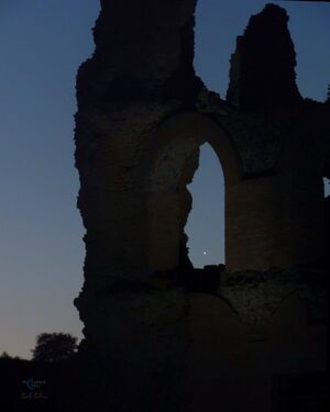 Arcturus in twilight (CC BY Paolo Palma 2025). Single shots with Nikon coolpix p510 taken on 12 november 2025 from about 150 metres of distance. Walls of Santo Stefano, a 9th-century church, built on the ruins of a 2nd-century Roman villa. It located in the municipality of Anguillara Sabazia, near Rome, in Italy.