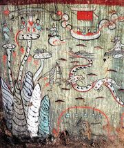 Canopy in Image of Master Tan Yan Praying for Rain on the South Wall of Mogao Cave 323 Early Tang Image Courtesy of the Dunhuang Academy.jpg