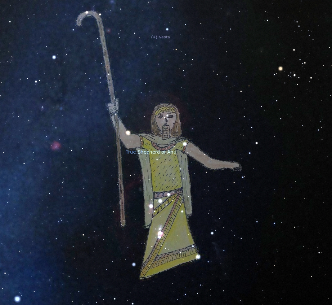 Painting of the True Shepherd of Anu by Jessica Gullberg (2021) on a Stellarium map (Gullberg, Hoffmann, Gullberg 2022)