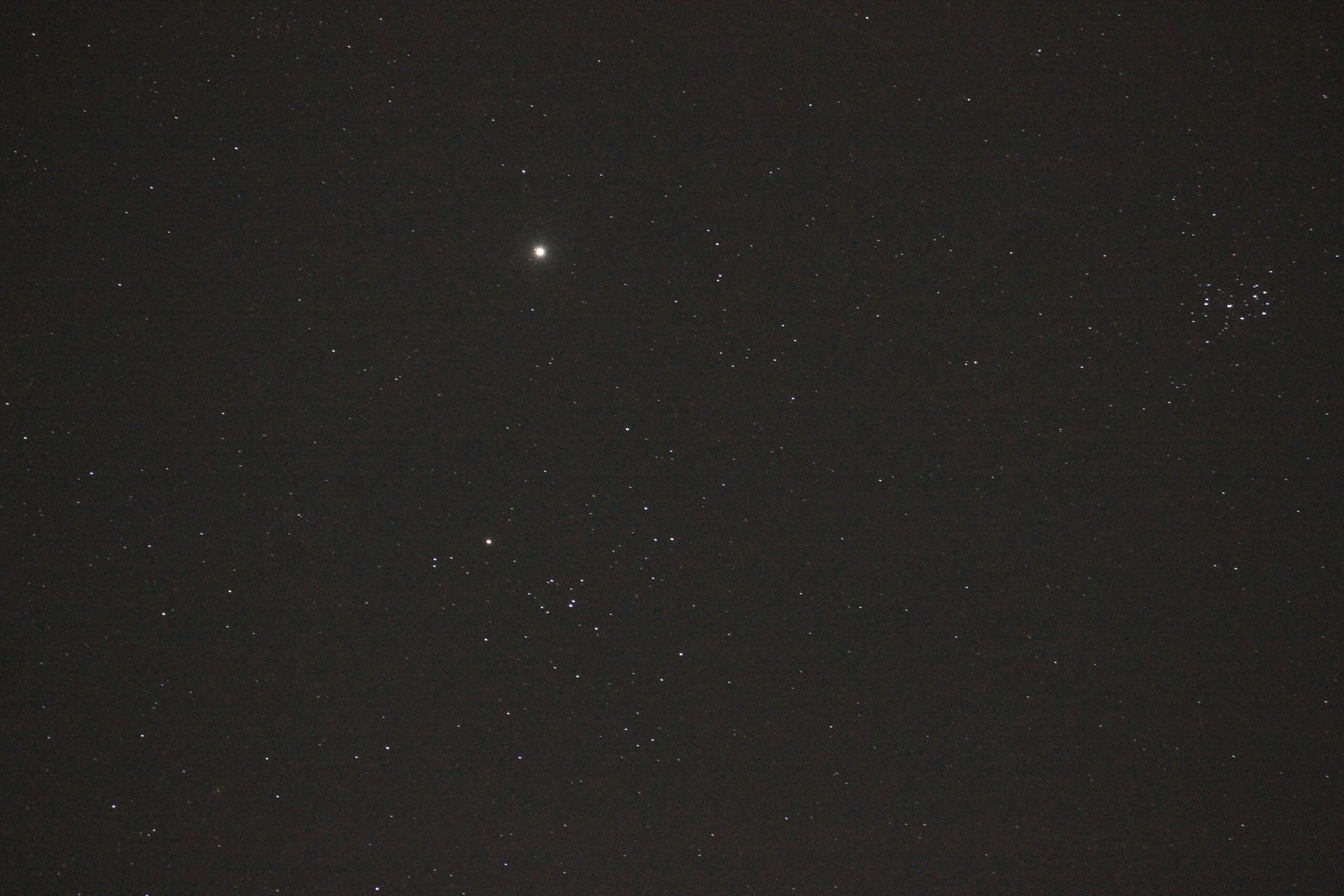 Jupiter in Taurus, north of the Hyades & east of the Pleiades (SMH, in early 2025).