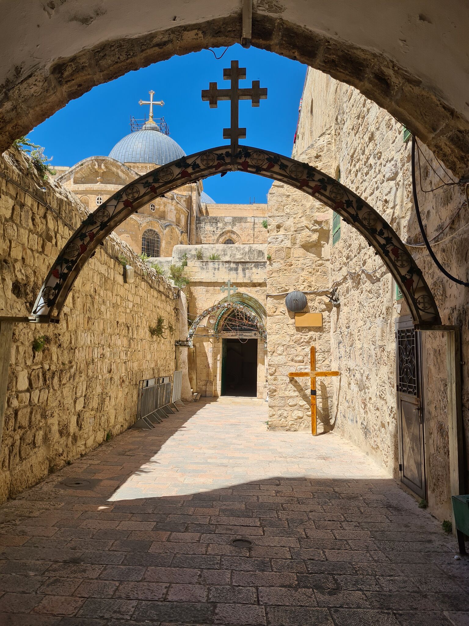 Many crosses in the Christian quarter of old town Jerusalem (SMH 2023). Sometimes, the different designs of the crosses indicat different orders.
