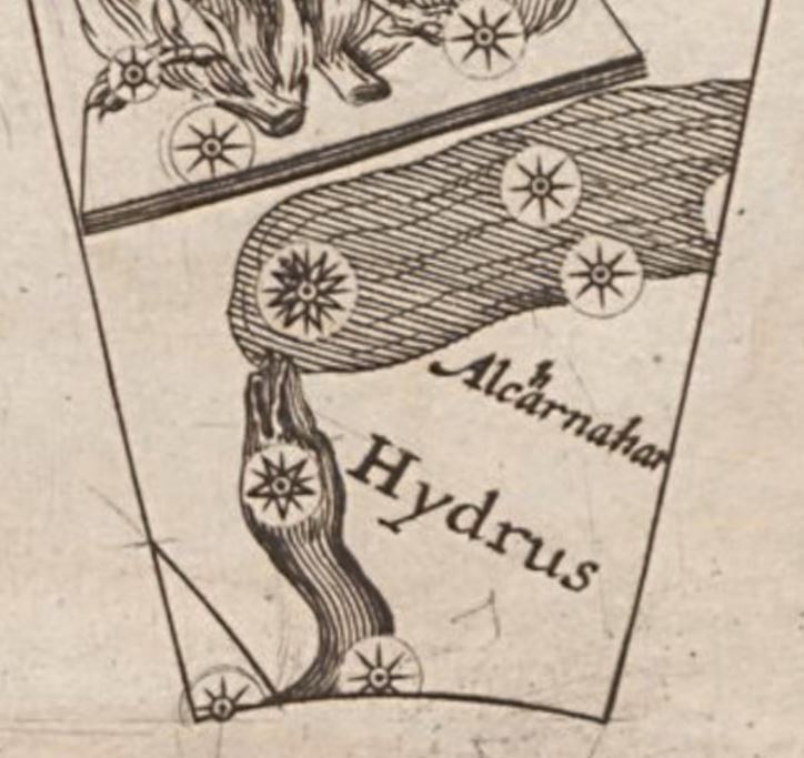 The spelling variant for "Achernar" on Plancius' 1612 globe.
