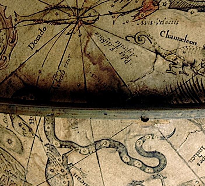 Hydrus on the celestial globe by Blaeu (1602), copied from Plancius/ Hondius (1597/8); RMG https://collections.rmg.co.uk/mediaLib/360/media-360270/large.jpg