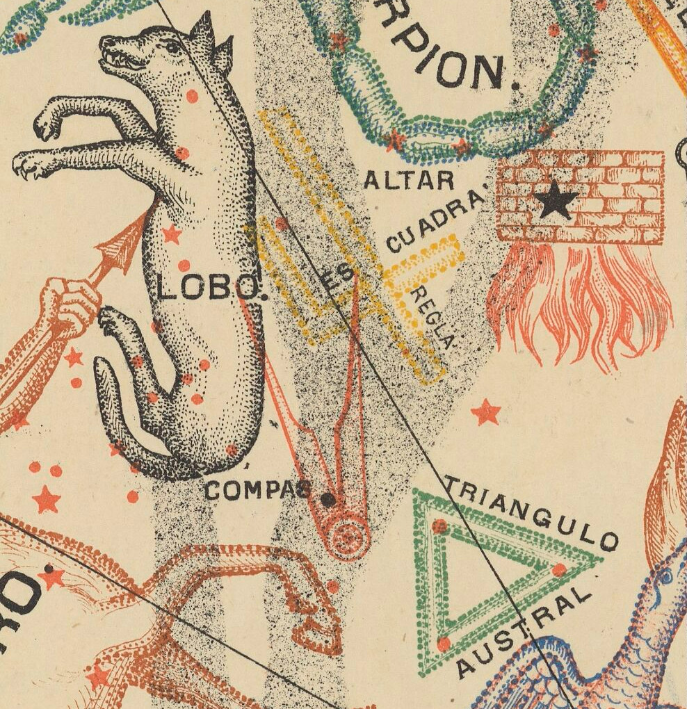 Lupus, Norma, Circinus, Triangulum Australe, and Ara at Planisferio celeste (Carlos Simon 1894)