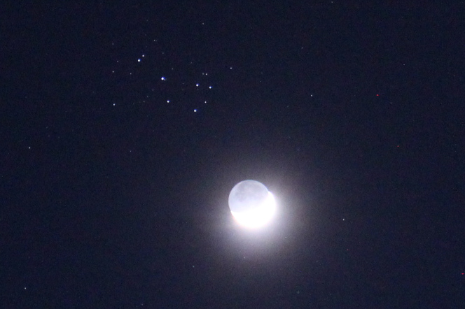Pleiades and 3 days old Moon, 1 April 2025 (SMH)