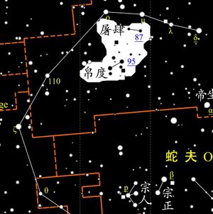 Bó Dù (帛度, “Textile Ruler”) is a Chinese asterism consisting of two stars, established by the Wuxian (巫咸) tradition during the Han dynasty. Together with Tusi (屠肆), the Butcher Shop, it formed a double-asterism within the Chinese super-constellation of Tianshi (天市), the Celestial Market Place. Since 2025, "Bodu" is also the IAU-star name of 95 Her, a white subgiant in the constellation of Hercules.