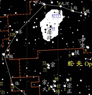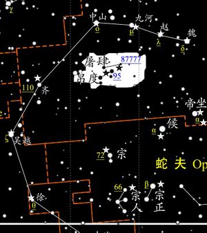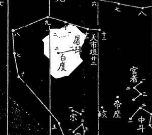 - ↑ Yi Shitong伊世同. Zhongxi Duizhao Hengxing Tubiao中西对照恒星图表1950. Beijing: Science Press.1981: 32.