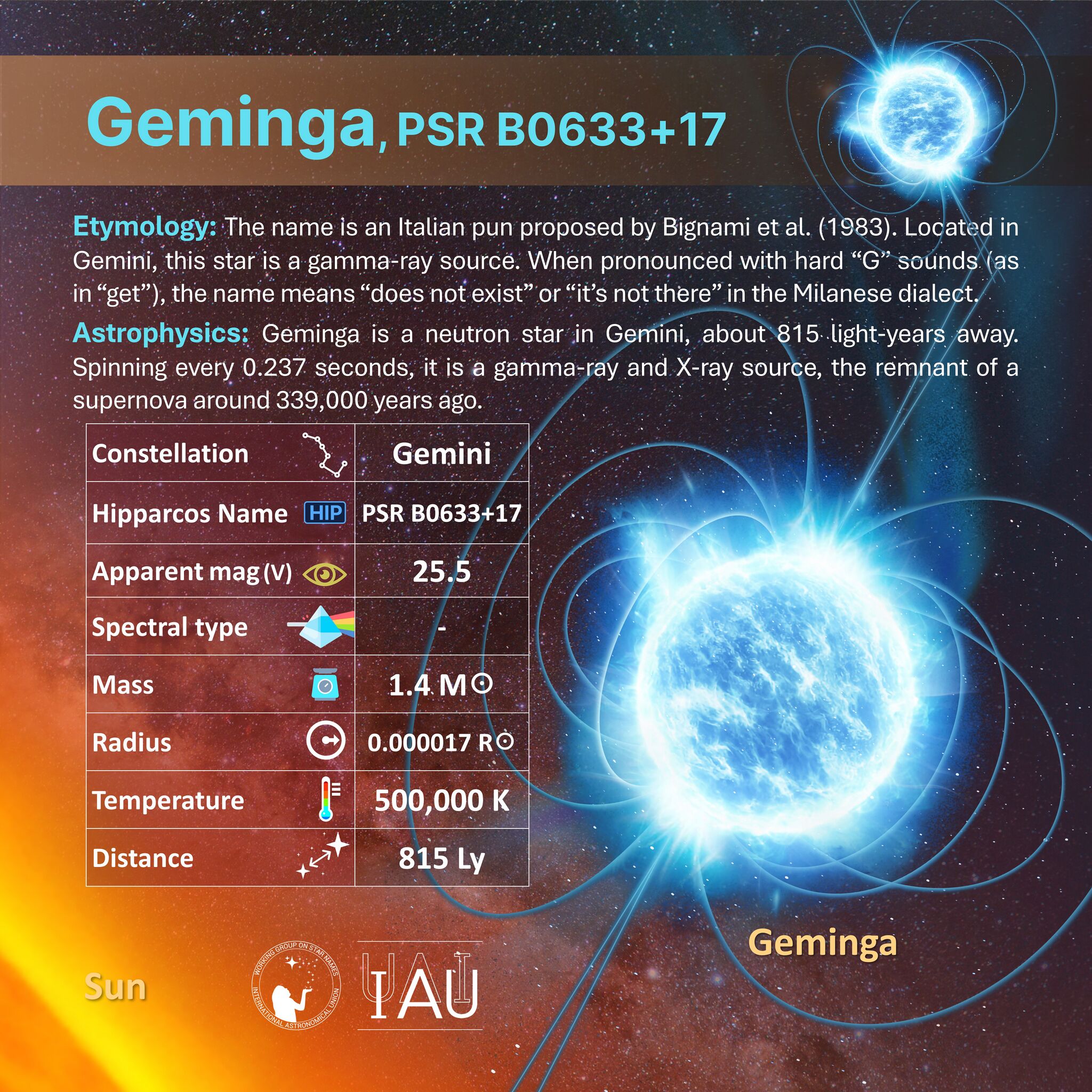 Geminga profile card (CC BY Sadegh Faghanpour for IAU WGSN).