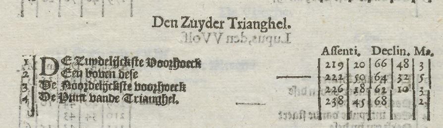 de Houtman (1603) "den Zuyder Trianghel", the Southern triangle (TrA). screenshot of star catalogue.