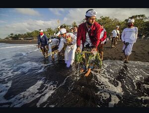 In Balinese Hindu tradition, according to the Yama Purwana Tattwa lontar, every dead person (pitra) must perform a sacred offering (Yadnya). After doing cremation, the ashes will thrown into sea.