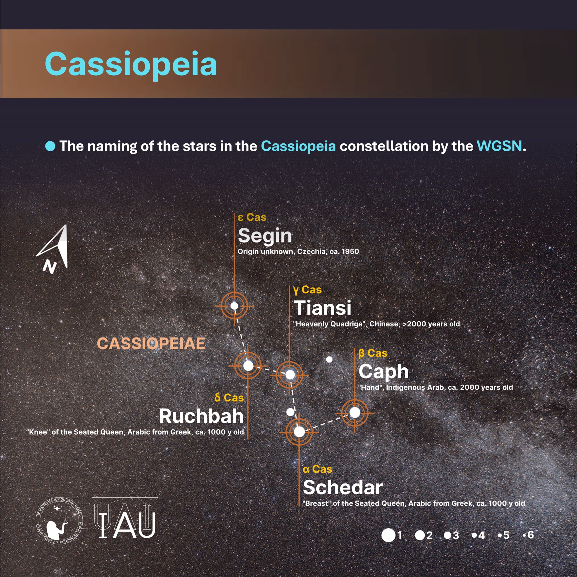 Cassiopeia with WGSN-names (CC BY Sadegh Faghanpour and Susanne M Hoffmann for WGSN 2025).