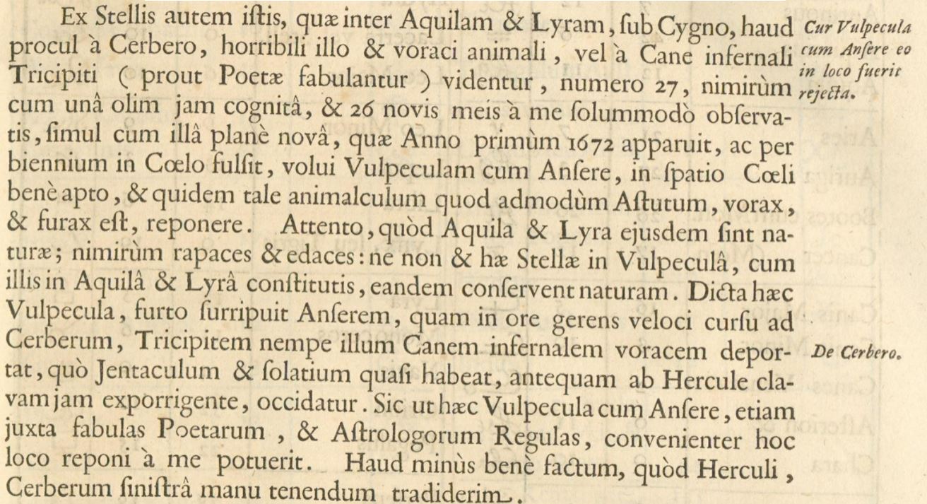 Vulpecula cum Ansere as decribed by Hevelius (1687).